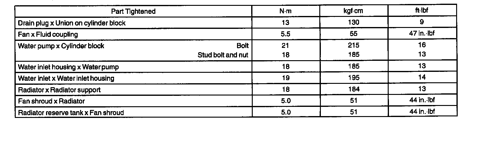 Torque Specifications