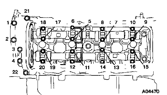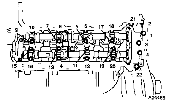 - The cylinder head bolts are tightened in 3 progressive steps (steps (c) and (e)).