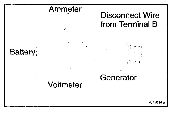 1. Disconnect to the wire from terminal B of the generator and connect it to the negative (-) lead of the ammeter.