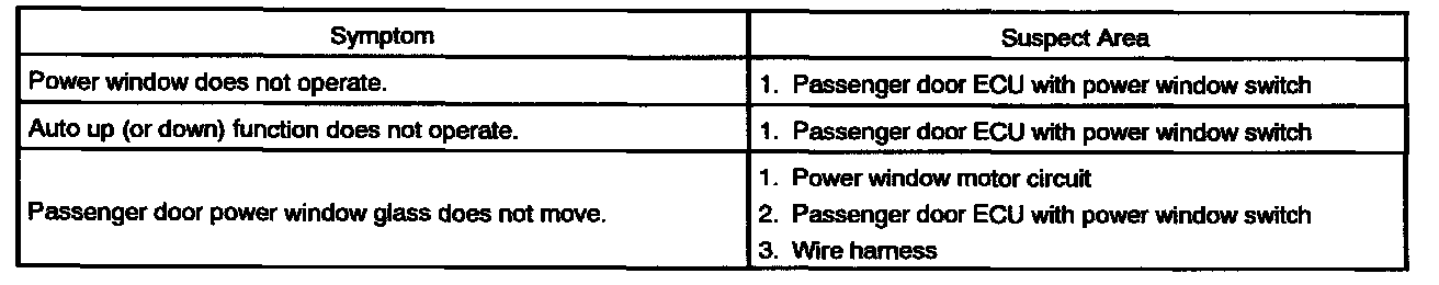 Problem Symptoms Table - Power Window Control System: