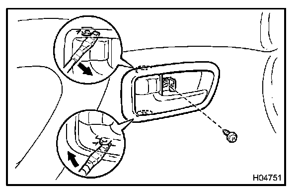 c. Using a screwdriver, remove the inside handle bezel as shown in the illustration.