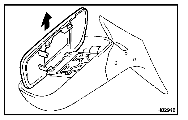 NOTE: Be careful not to damage the wires on heated mirrors. Disconnect the wires from the back side of the heater.
