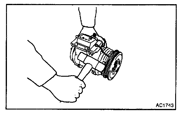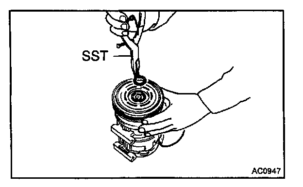 AFTER REASSEMBLY, CHECK MAGNETIC CLUTCH CLEARANCE