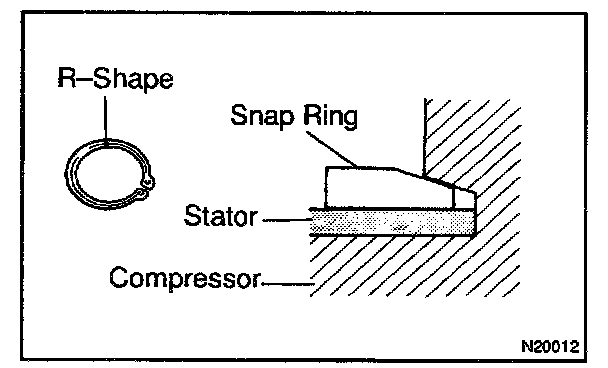 The snap ring should be installed so that beveled side faces up.