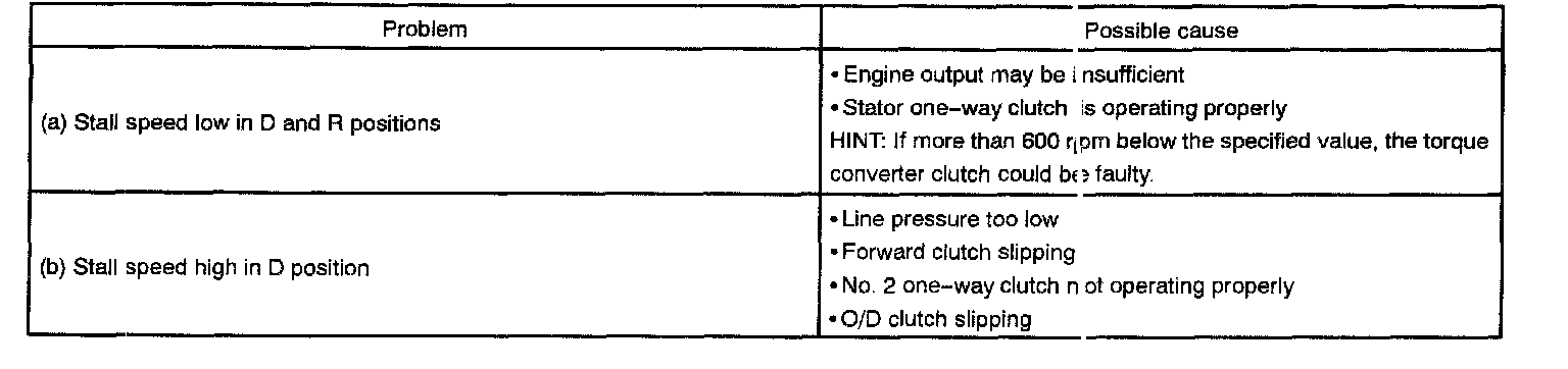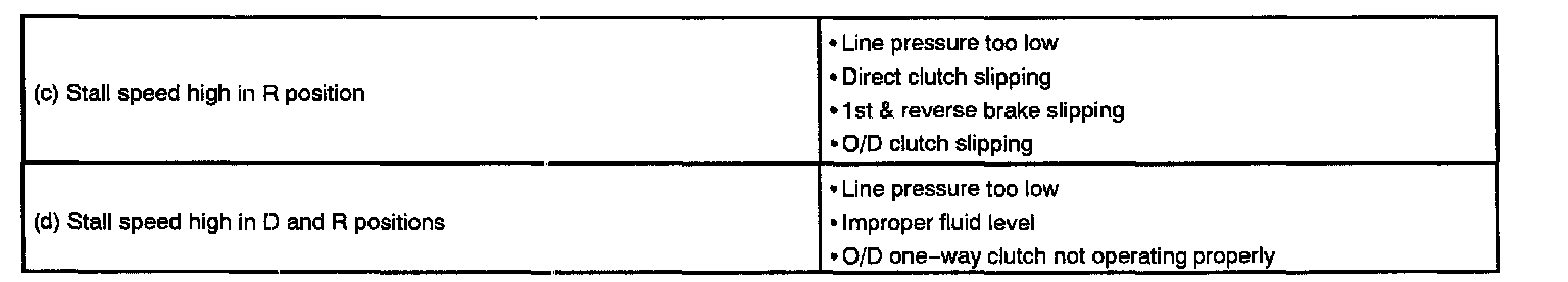 The object of this test is to check the overall performance of the transaxle and engine by measuring the stall speeds in the D and R positions.
