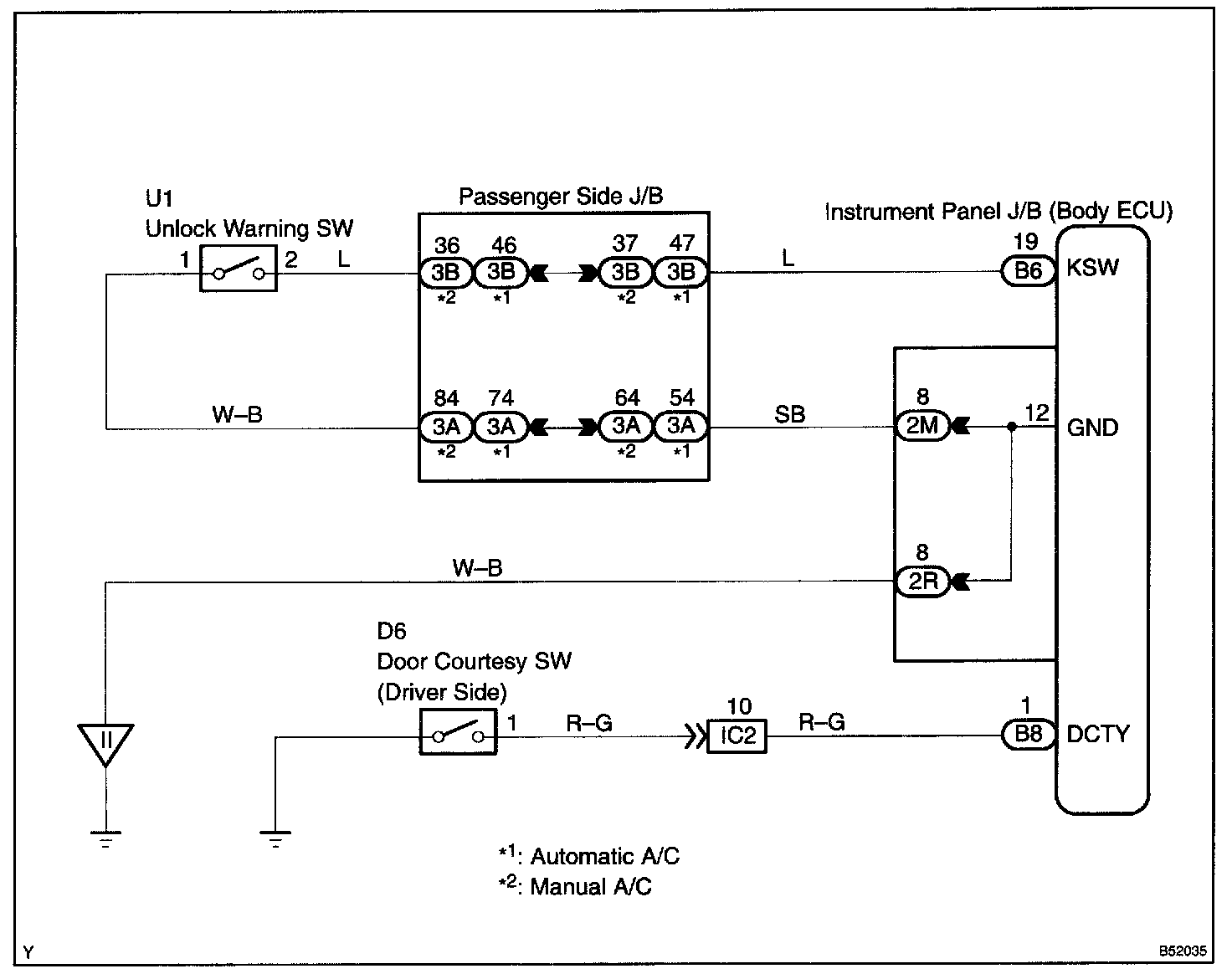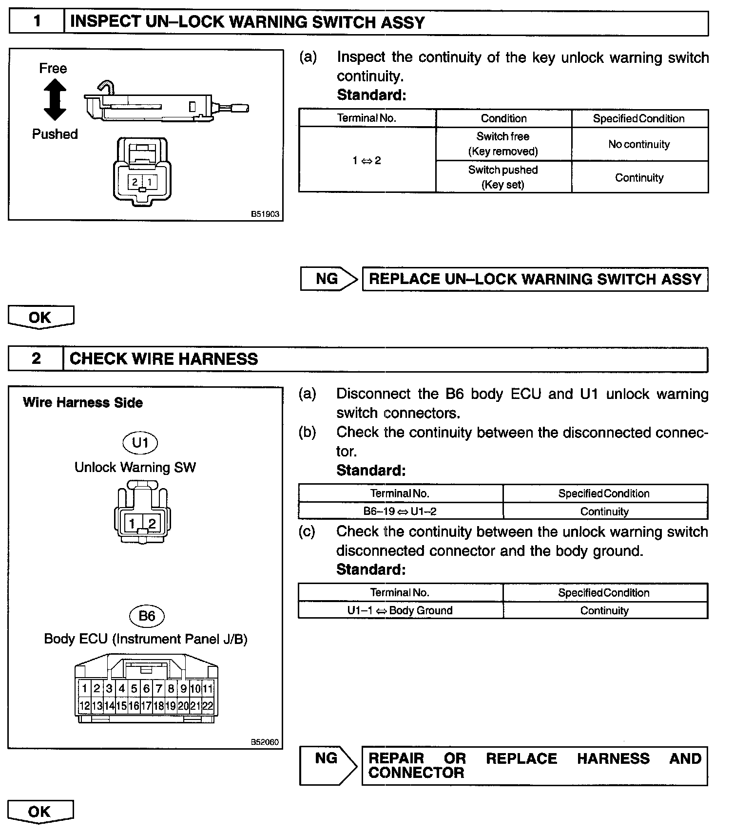 Body ECU senses, by the unlock warning switch, that the key is in the key cylinder. Because of this, the body ECU will unlock all the doors immediately after locking them if a door is locked while the key is in the key cylinder.