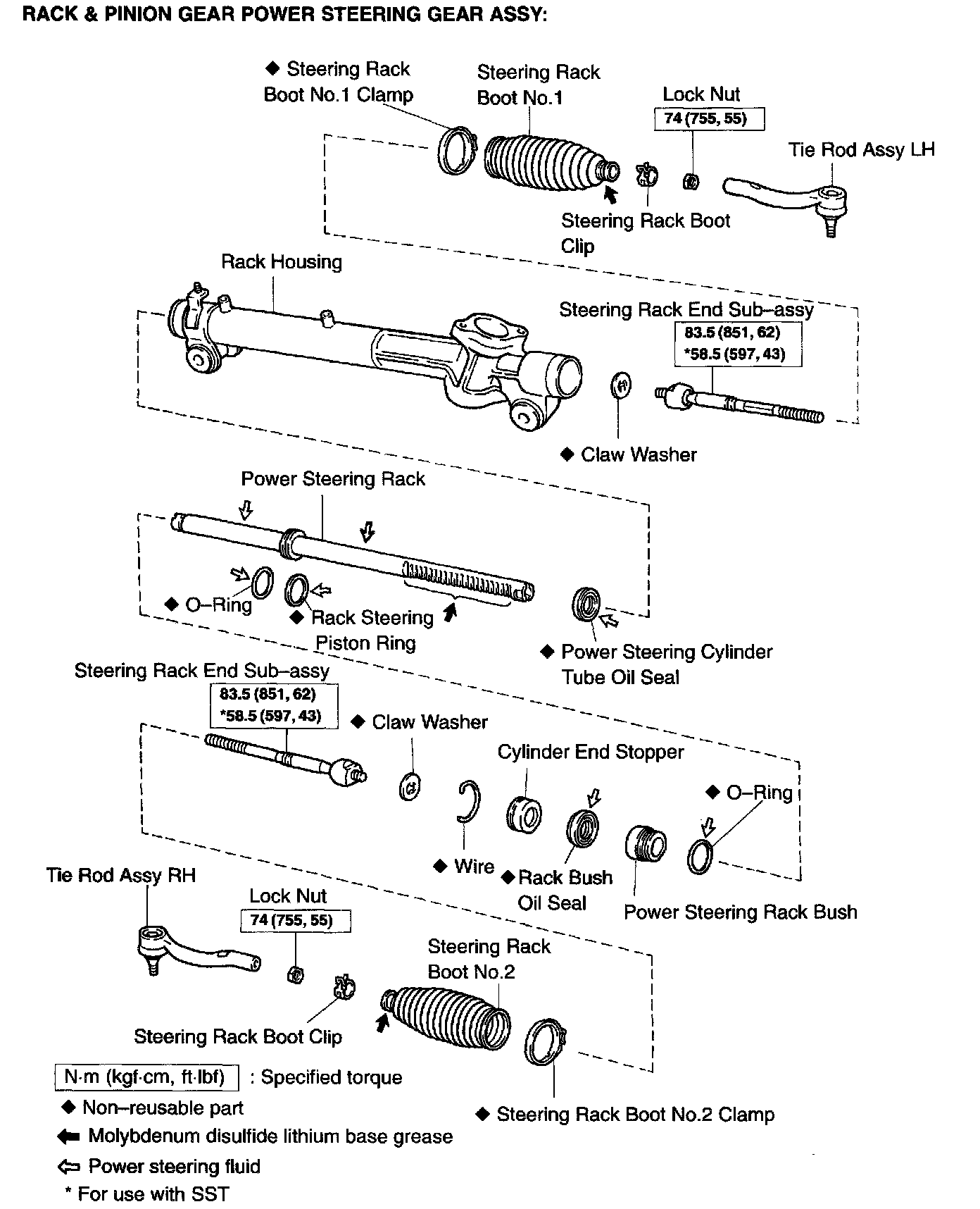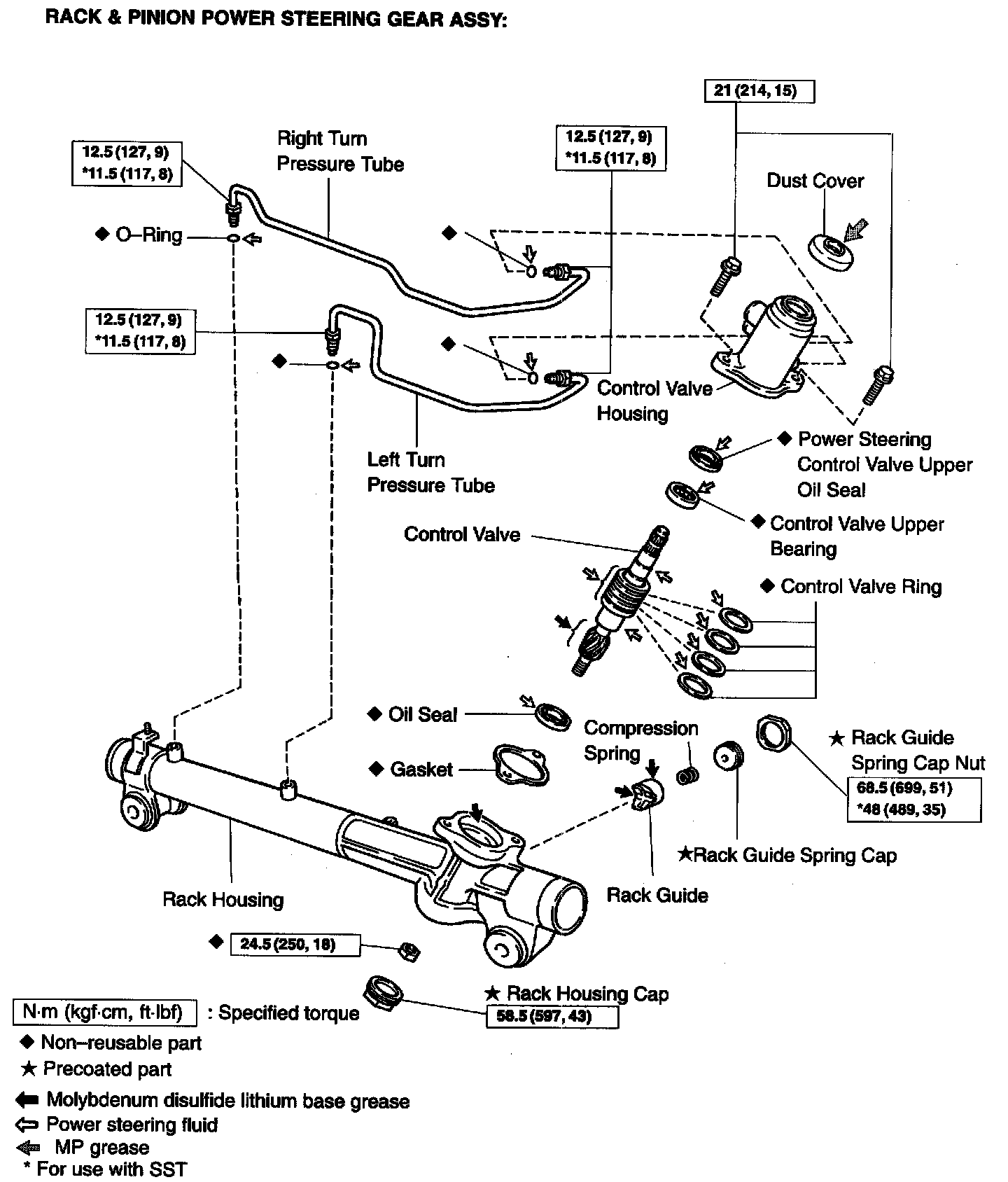 RACK & PINION POWER STEERING GEAR ASSY OVERHAUL W/ RELATED COMPONENTS