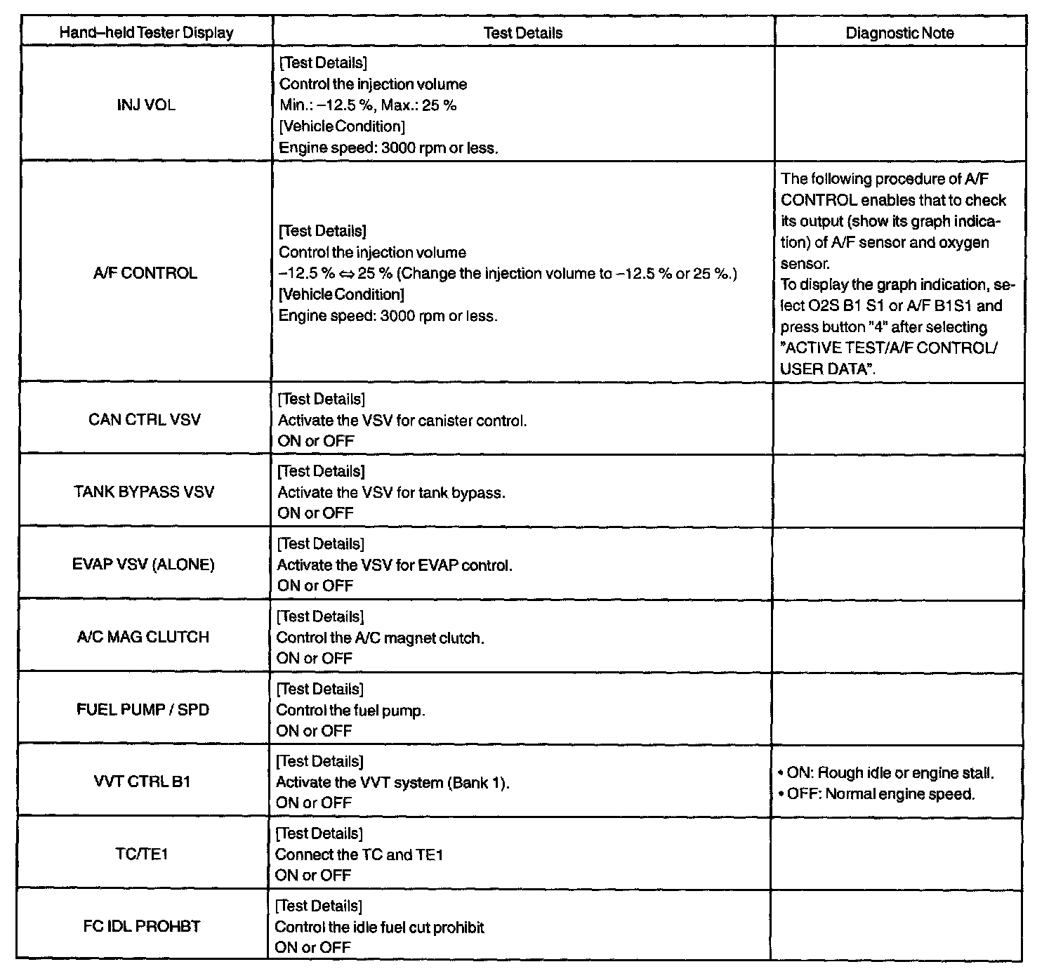 ACTIVE TESTHINT: Performing the ACTIVE TEST using the OBD II scan tool or Hand-held tester allows the relay, VSV, actuator and so on to operate without parts removal. Performing the ACTIVE TEST as a first step of troubleshooting is one of the methods used to shorten the labor time.