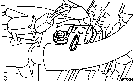 3. Pull out the wire harness as shown in the illustration. Connect the clip of the timing light to the engine.