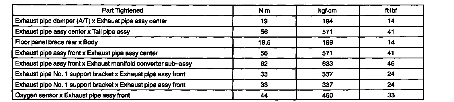 TORQUE SPECIFICATION