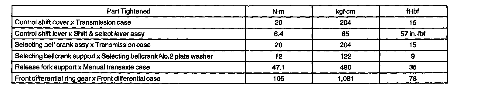 TORQUE SPECIFICATION