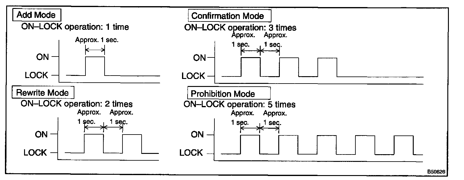 NOTE: If the number of the ON-LOCK operation of the ignition switch is 4 or more than 5, the registration will end without any signs.
