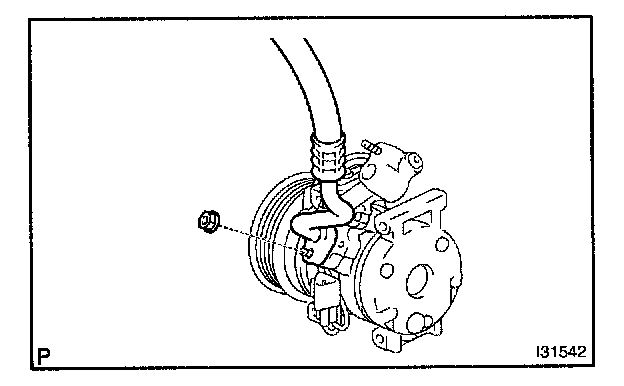 d. Install the cooler refrigerant suction hose No.1 to the compressor and magnetic clutch with the nut.