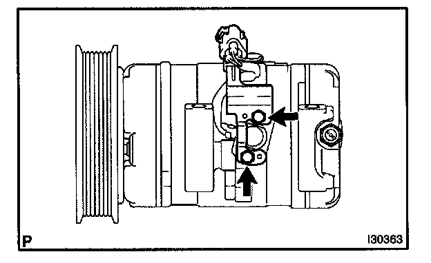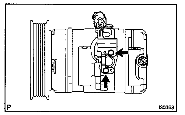 b. Sufficiently apply compressor oil to the new O-ring and fit surface of the compressor and magnetic clutch.