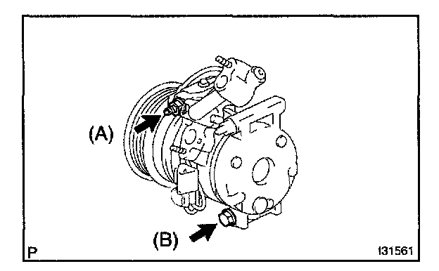 a. Tighten the compressor and magnetic clutch with the bolt (A) and bolt (B).