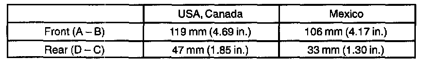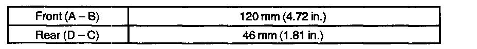 If the camber is not within the specified value, using the following table, estimate how much additional camber adjustment will be required, and select the camber adjusting bolt.