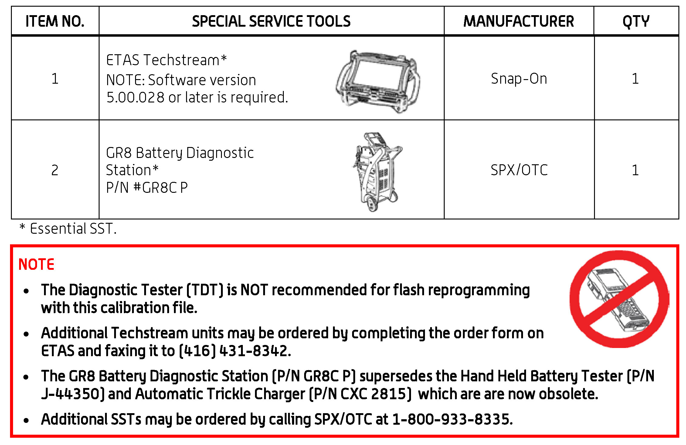 - For details on how to use the GR8 Battery Diagnostic Station, refer to the GR8 Battery Diagnostic Station Instruction Manual located on ETAS/TIS library > Tools > tools and equipment > GR8 Battery Diagnostic Station Instruction Manual.