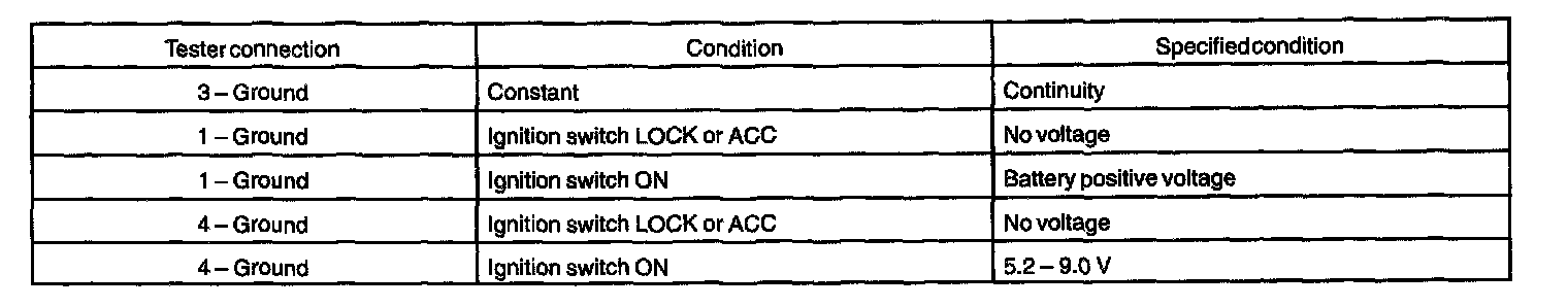 a. Disconnect the connector from the sensor and inspect the connector on the wire harness side, as shown in the chart.