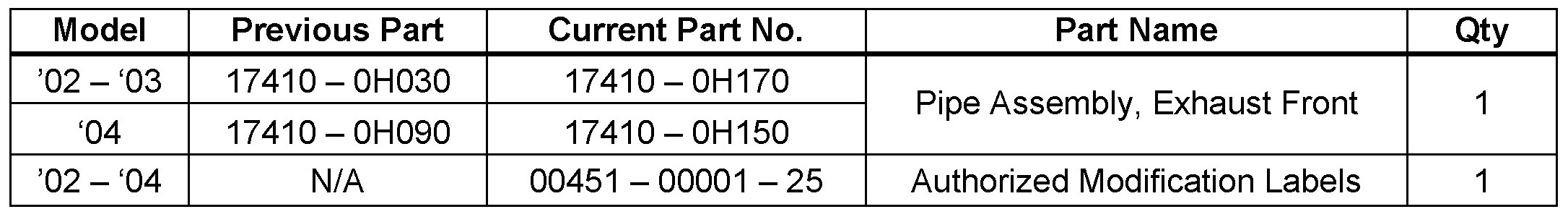 All 2002 - 2004 model year vehicles equipped with Manual Transmissions require replacement of the catalytic converter assembly only. Please refer to the catalytic converter replacement procedure.