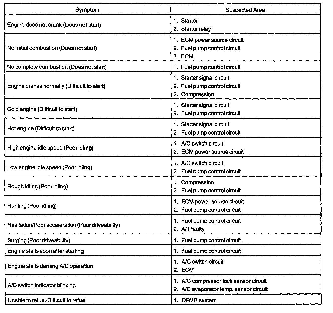 Problem Symptom Table: