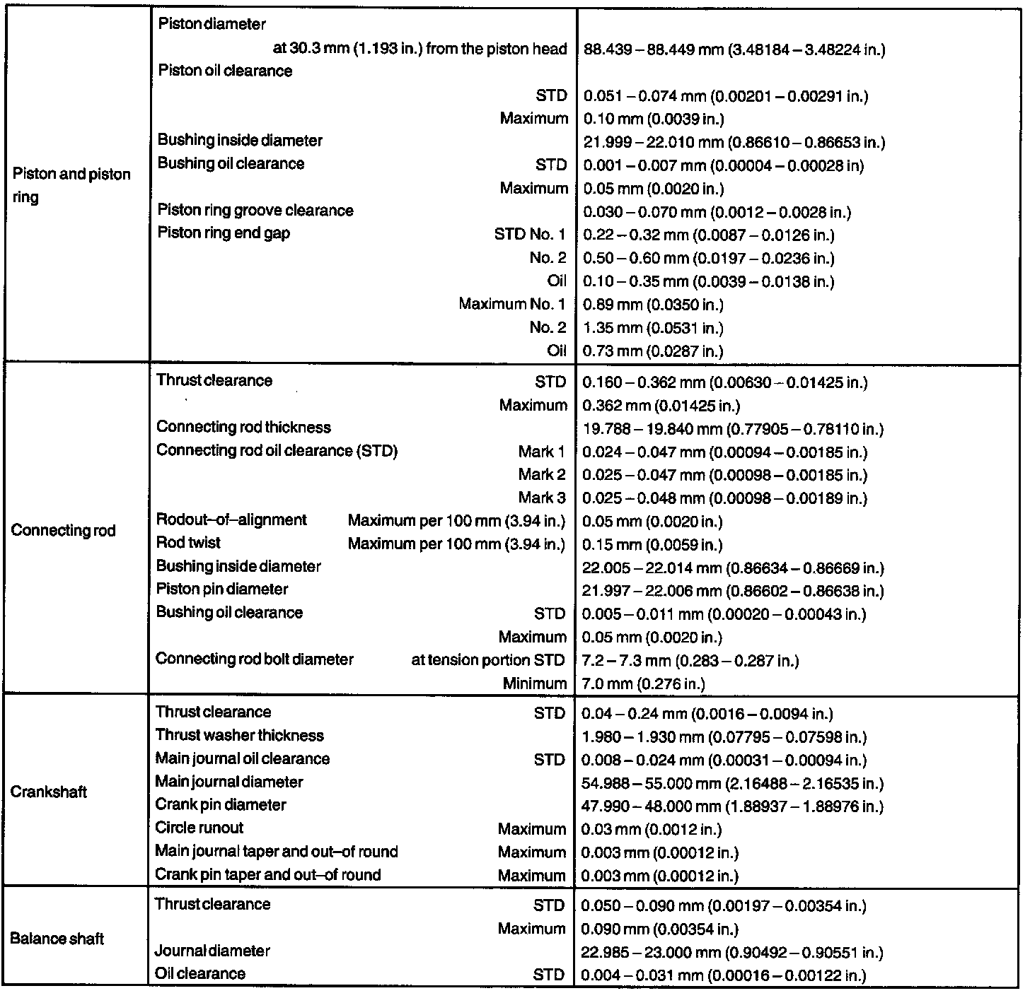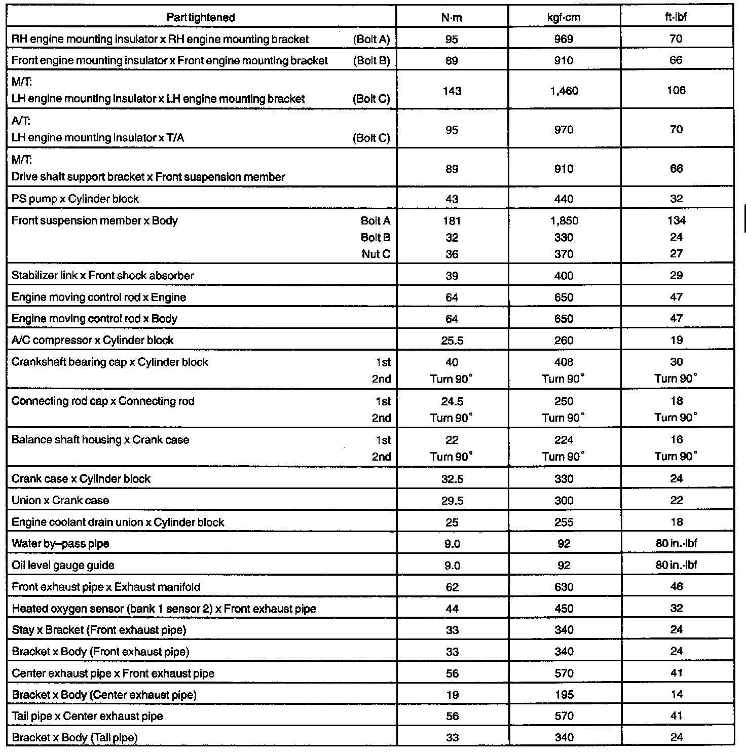 Engine Torque and Service Data
