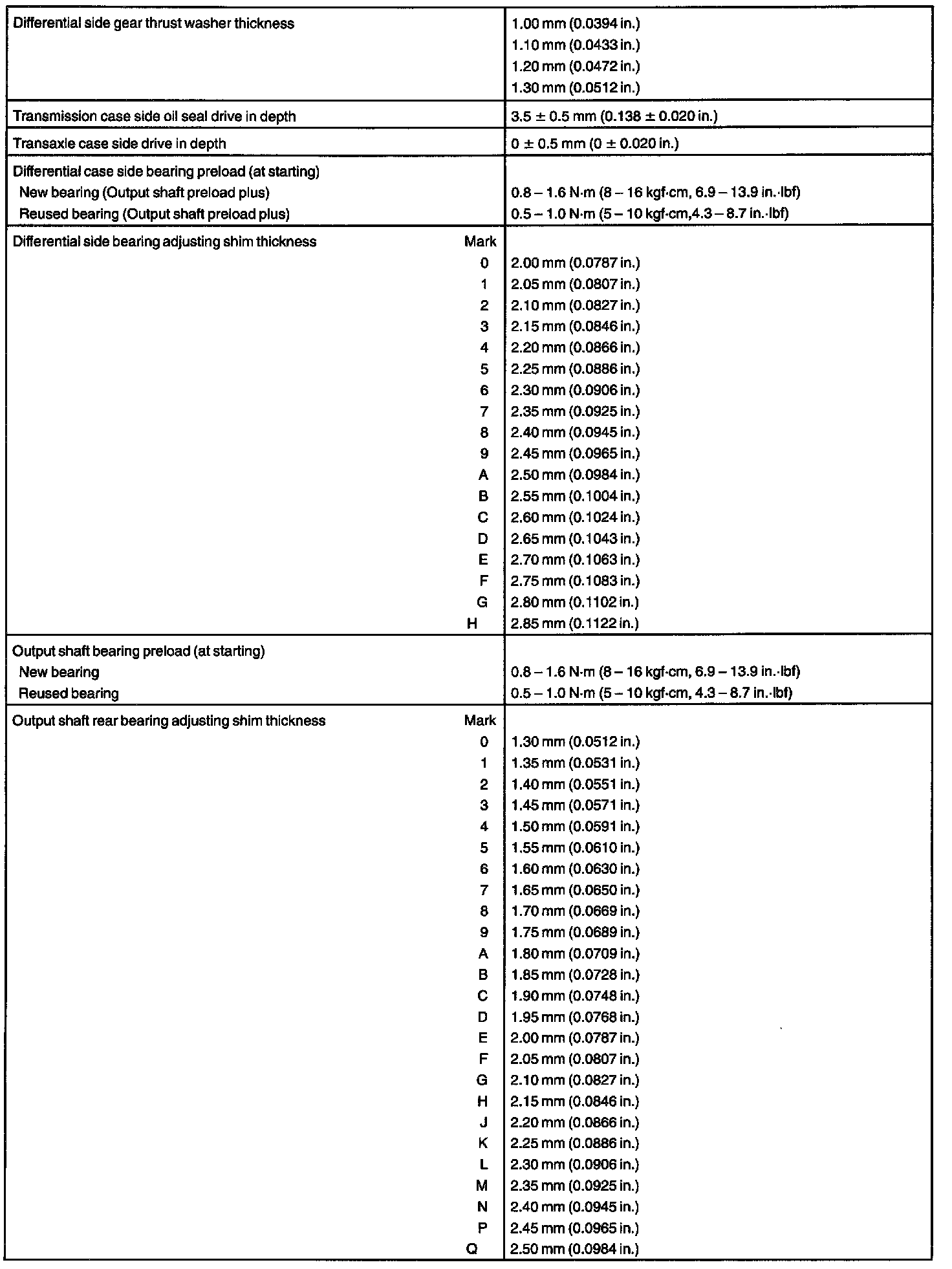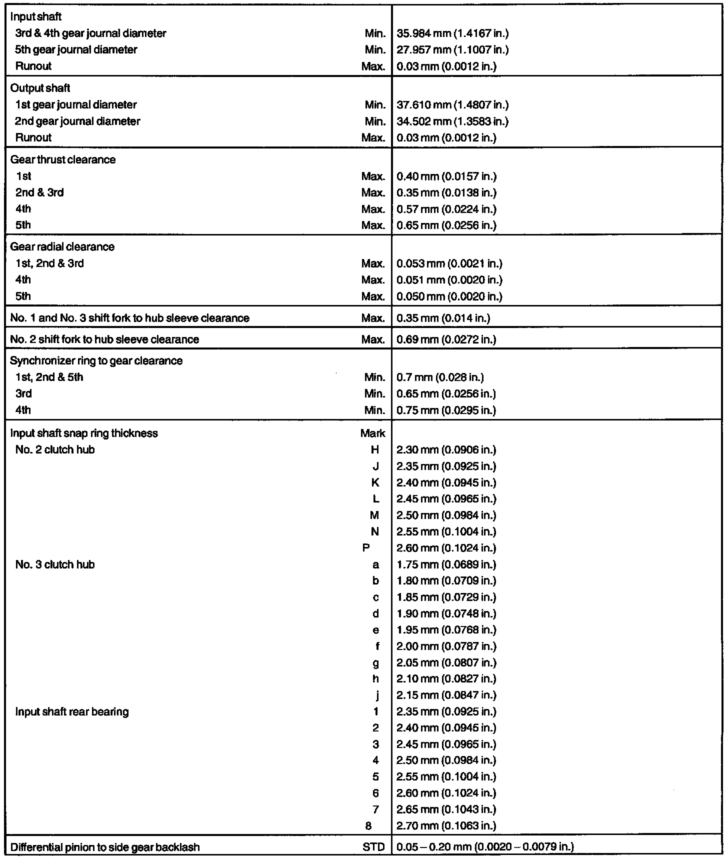 MANUAL TRANSAXLE (E351) SERVICE DATA: