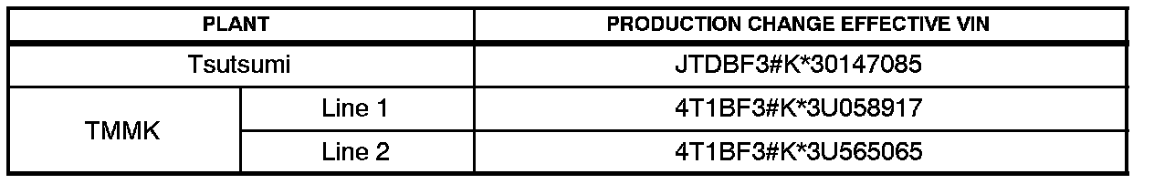 ^ 2003 model year Camry vehicles equipped with V6 engines produced BEFORE the Production Change Effective VINs shown below.