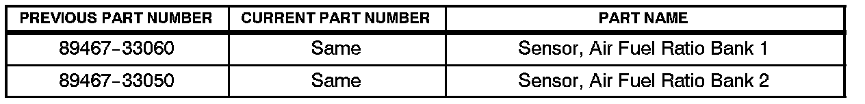 Under certain driving conditions, some 2003 model year Camry vehicles with V6 engines may exhibit a M.I.L. ON" with at least one of the following DTCs as a result of an Air Fuel (A/F) Sensor manufacturing issue.