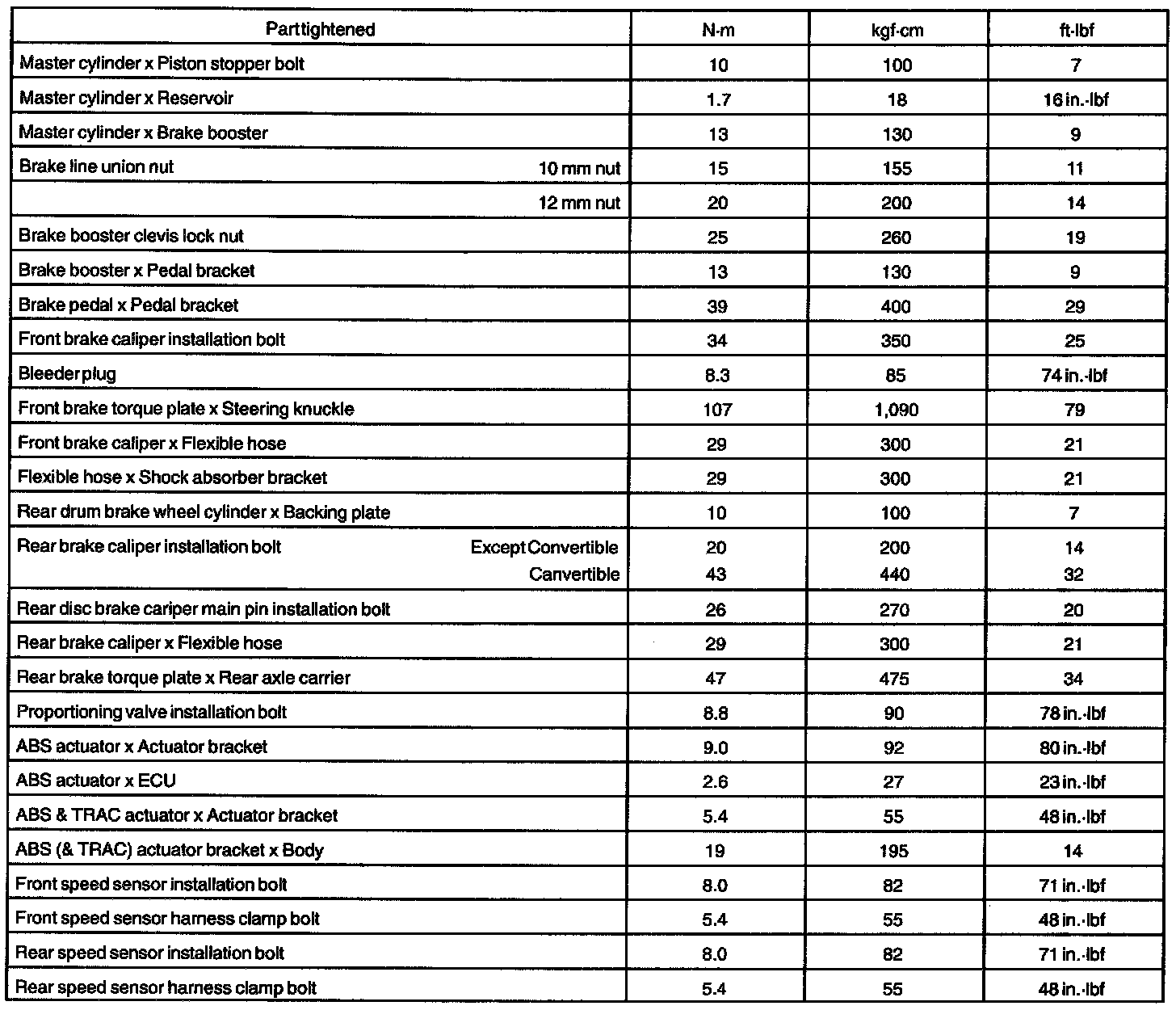 TORQUE SPECIFICATION: