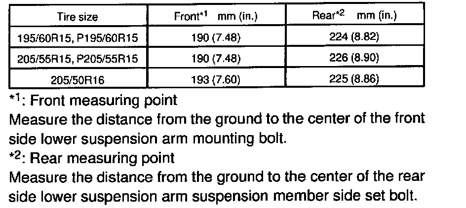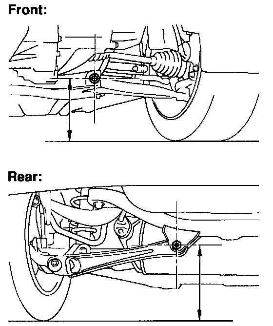 NOTICE: Before inspecting the wheel alignment, adjust the vehicle height to the specified value.