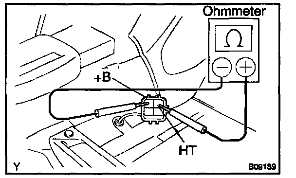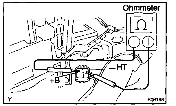 b. Using an ohmmeter, measure the resistance between the terminals +B and HT.