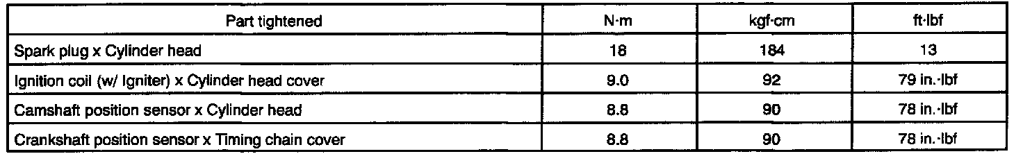 Ignition - Torque Specification: