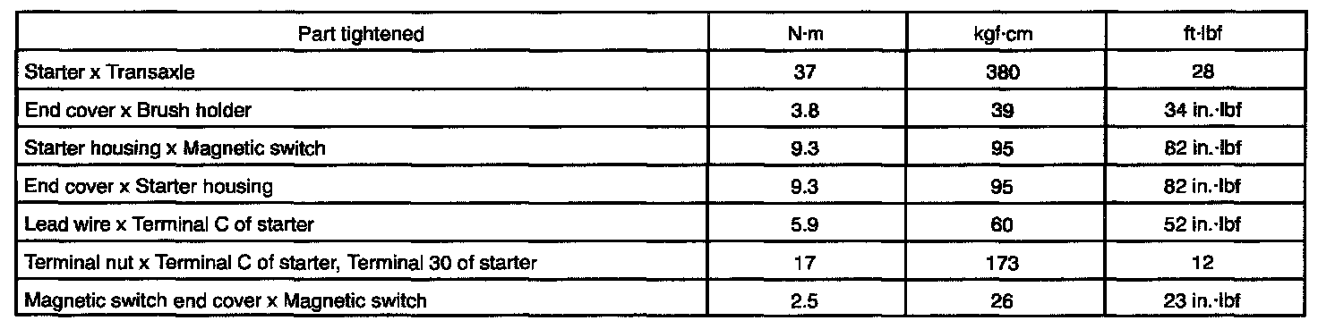 Starting - Torque Specification:
