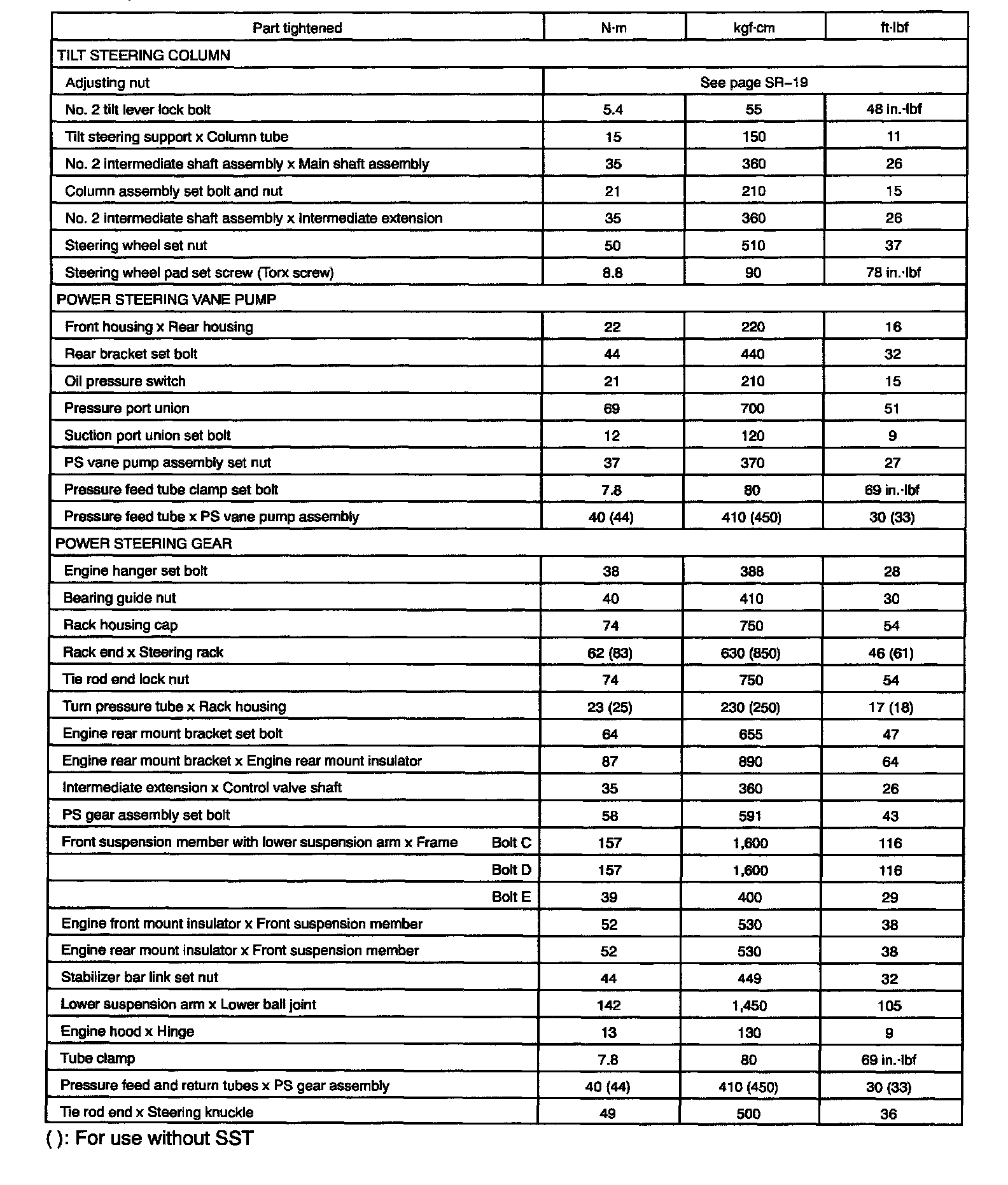 Torque Specification
