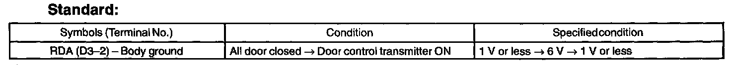 c. Reconnect the connector and check the voltage between the RDA terminal and the body ground.