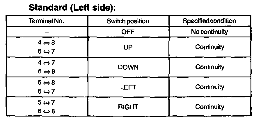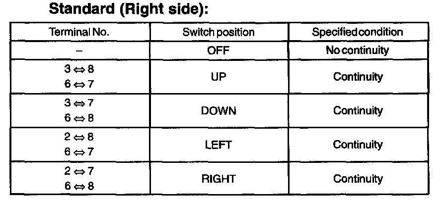 a. Inspect the mirror switch continuity.