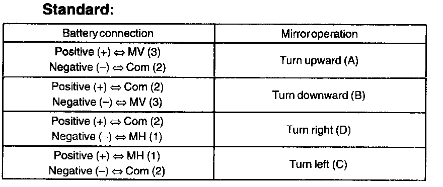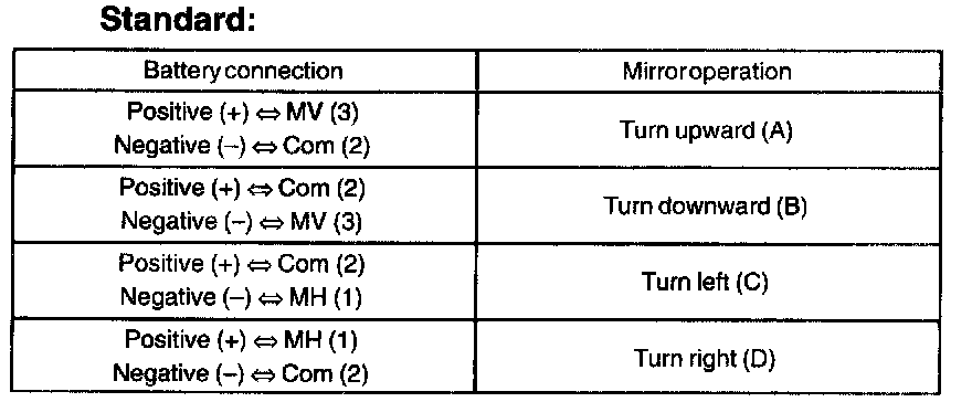1. Apply battery voltage as shown in the table.