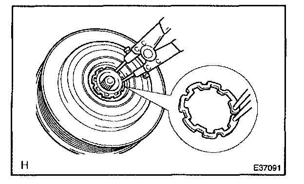 d. Using a snap ring expander, remove the snap ring and magnet clutch rotor.