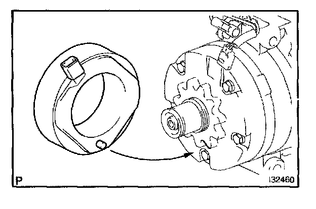 d. Using a snap ring expander, install the magnet clutch rotor and a new snap ring with the chamfered side facing up.