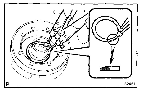 b. Using a snap ring expander, install a new snap ring with the chamfered side facing up.