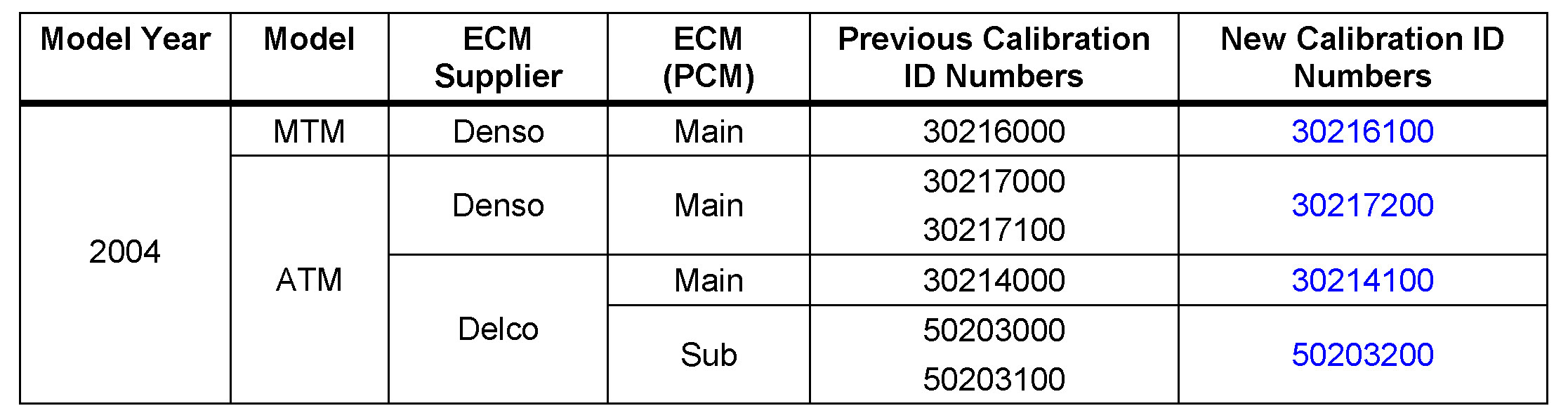 1. 2003 model year Corolla ATM vehicles equipped with Delco ECM (PCM) "P/N 89666 - 02150 are not reprogrammable.