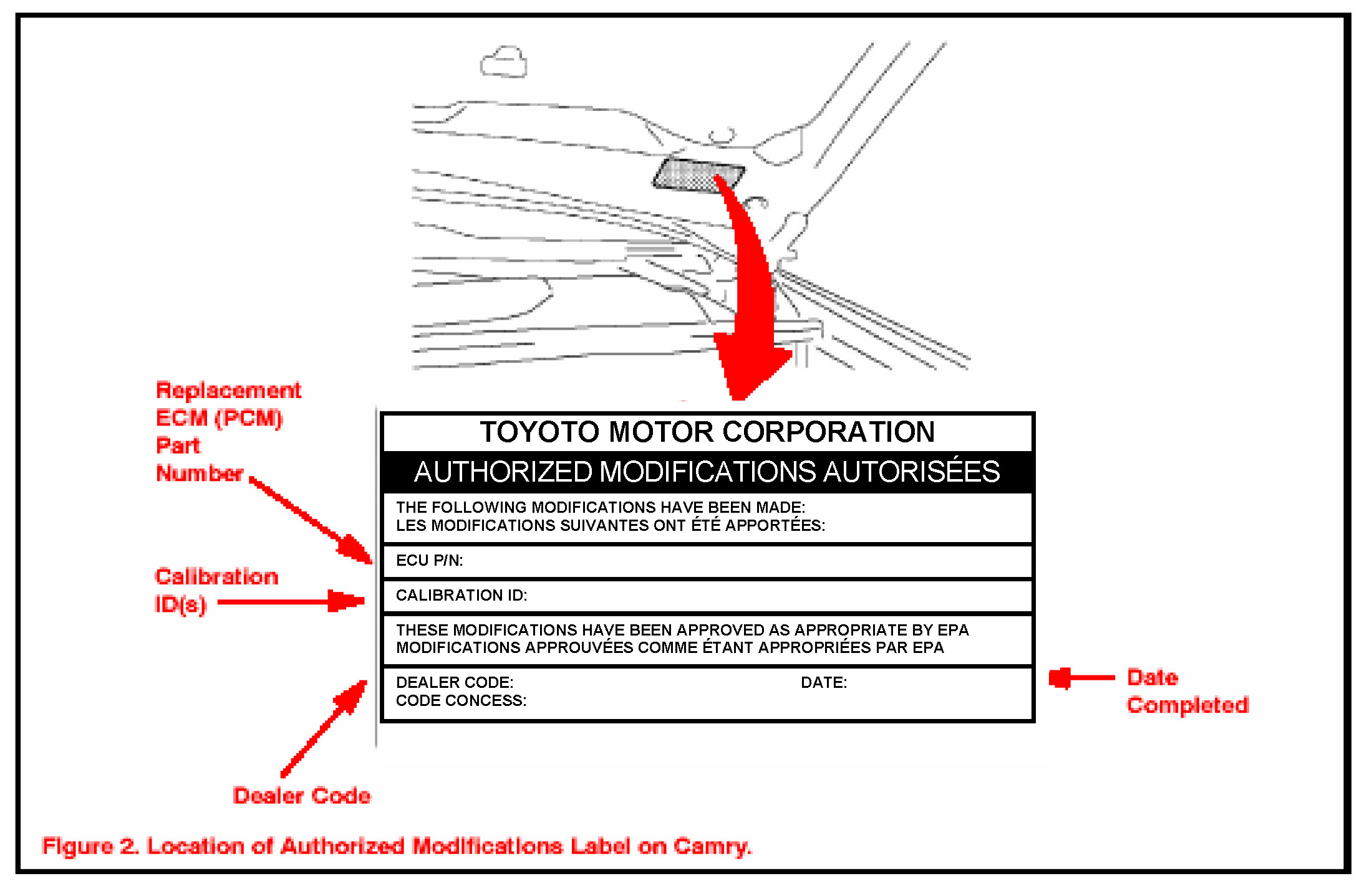 1. Check for the Authorized Modification Label affixed to the vehicle in the location shown in Figure 2. If there is no label present, proceed to step 2.