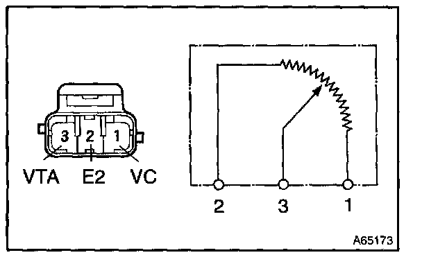 Change of resistance: The resistance value increases in proportion to the throttle lever opening value.