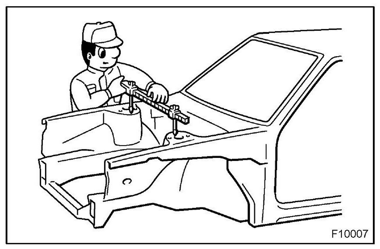 1. Before removal or cutting operations, take measurements in accordance with the dimension diagram. Always use a puller to straighten a damaged body or frame.