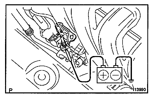 b. Connect the positive (+) lead from the battery to terminal of magnetic clutch connector and the negative (-) lead to the body ground.