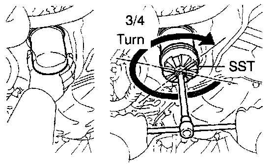 e) Lightly screw the oil filter into place, and tighten it until the gasket contacts the seat.
