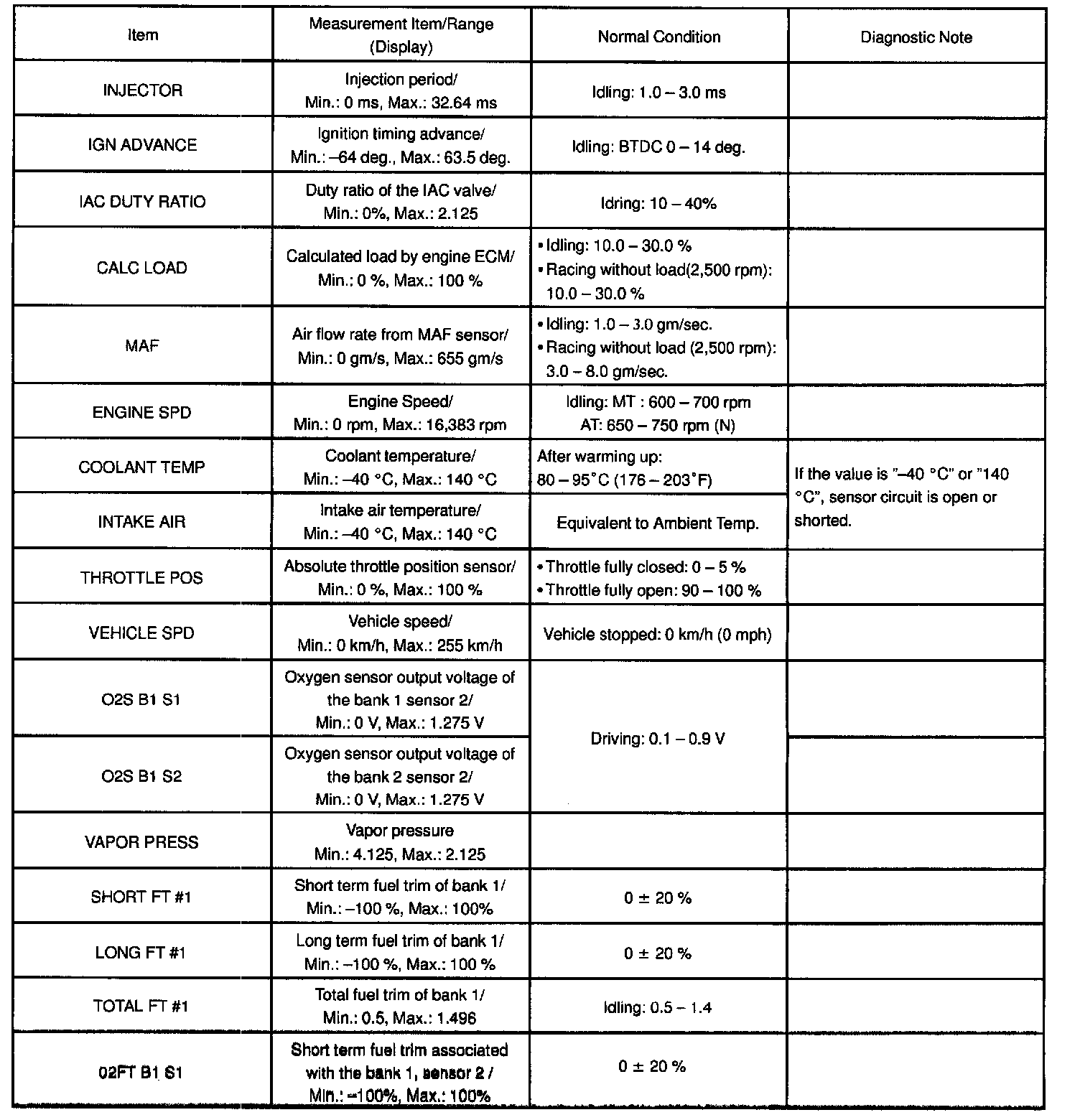 According to the DATA LIST displayed by the OBD II scan tool or hand-held tester, you can read the value of the switch, sensor, actuator and so on without parts removal. Reading the DATA LIST as a first step of troubleshooting is one of the method to shorten the labor time.