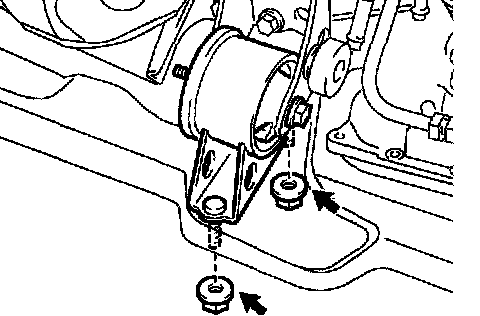 b. Remove the 2 nuts, and disconnect the engine mounting insulator.