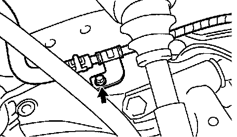 d. Remove the bolt and disconnect the steering gear return hose clamp from the frame.