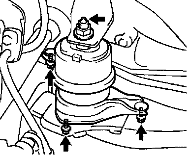 e. Remove the 4 nuts from the engine mounting insulator RH.